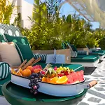 يتم تطبيق تكلفة إضافية على الشرفة للتشمس وبركة السباحة الخارجية. تشتمل مرافق الشاطئ في الفندق على كراسي للاستلقاء وشمسيات كبيرة.